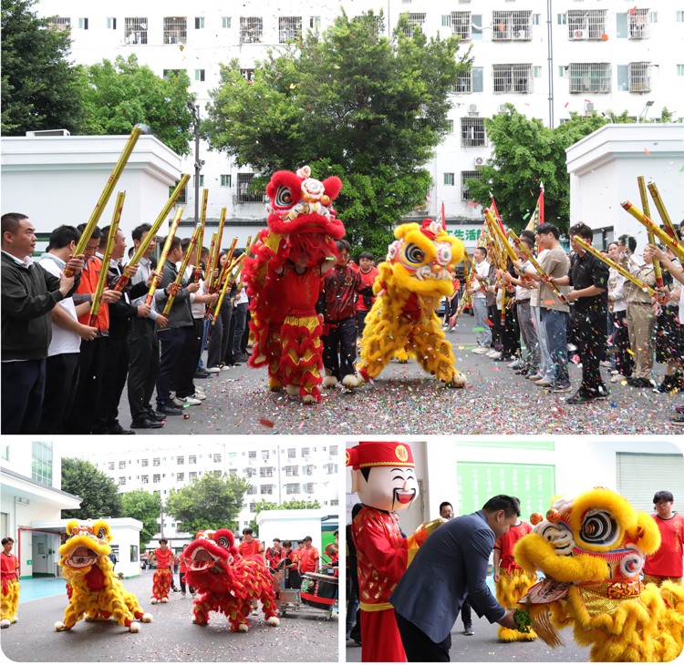 红绸翻飞,锣鼓喧天,醒狮灵动起舞