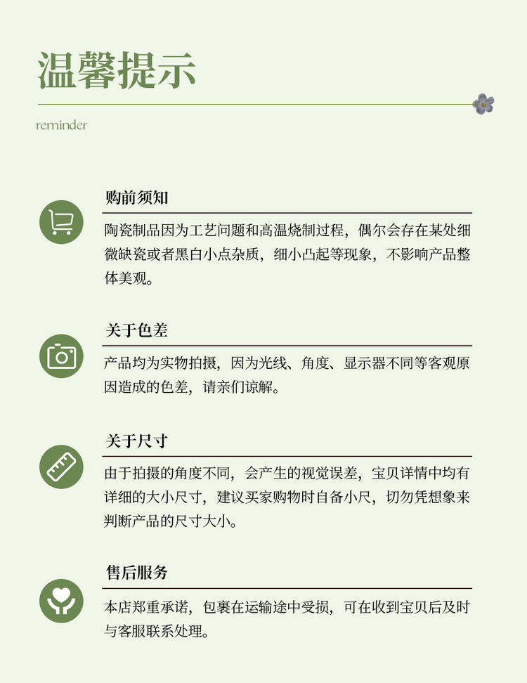 5.如商品无质量问题,将不予退换。